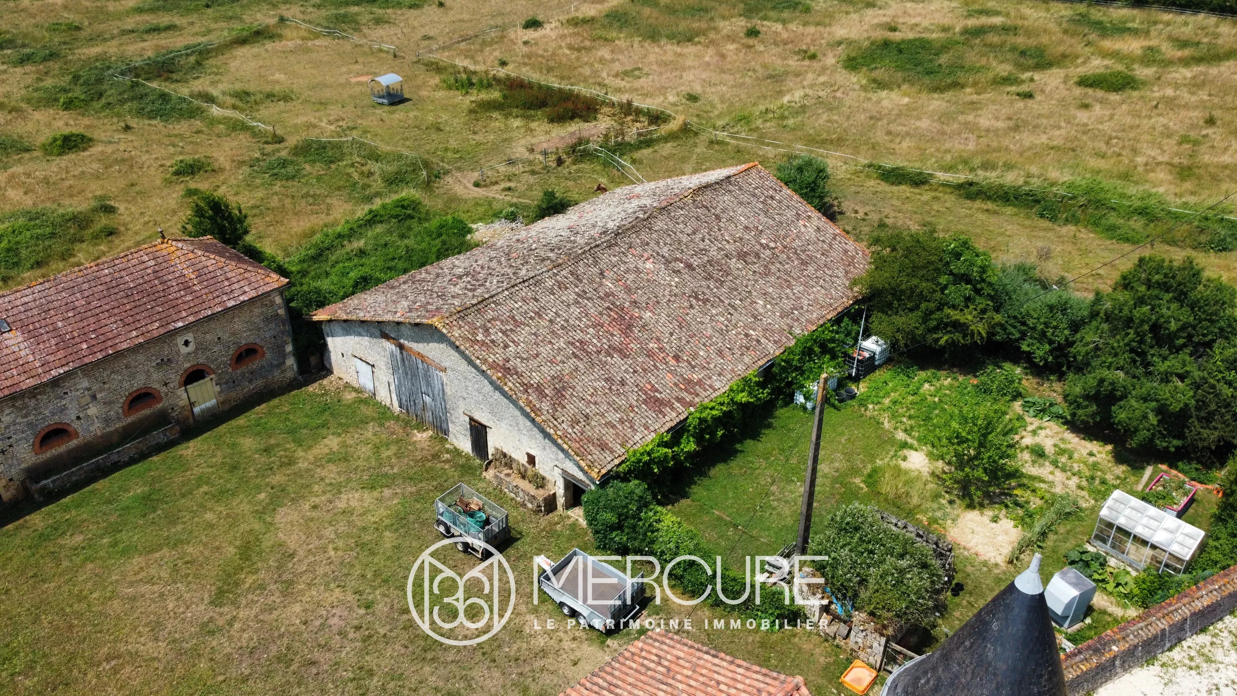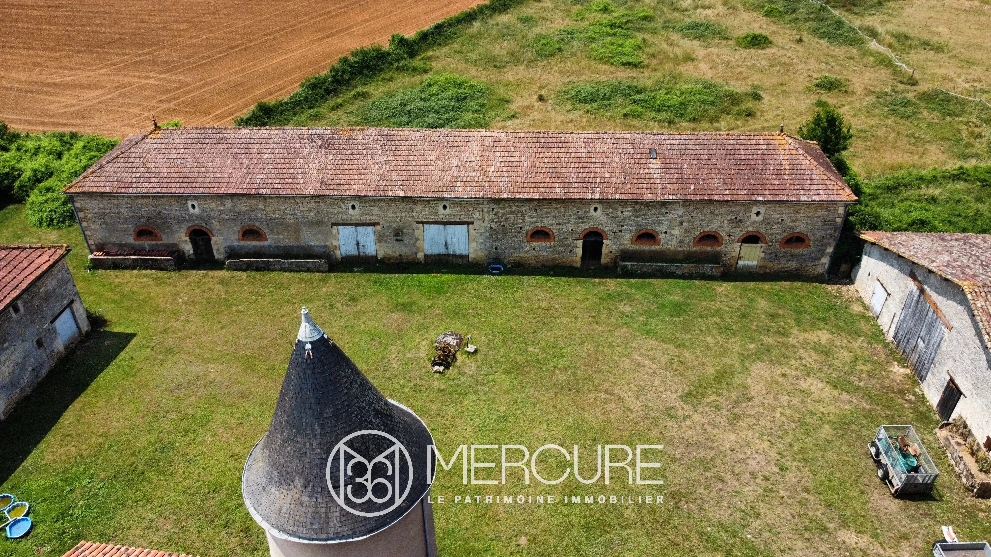 Outside, the estate comprises four large outbuildings totalling around 1,200 m², offering great potential for renovations such as the possible creation of gîtes or a residence, or the fitting out of a reception room or accommodation in the former barn, where the high ceilings and original 19th-century features are a reminder of the past importance of the horse-breeding activity.